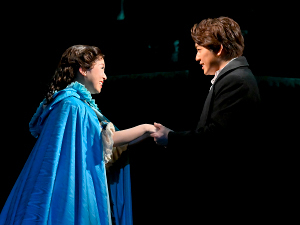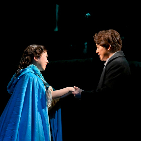 震えるクリスティーヌのか細い手を握り、愛を告白するラウル。そして二人は将来を誓い、くちづけを交わします。クリスティーヌの可憐な歌声とラウルの若さと自信溢れる熱い歌声が重なり合い、パリの夜風が満点の星空へと運んでいきます。